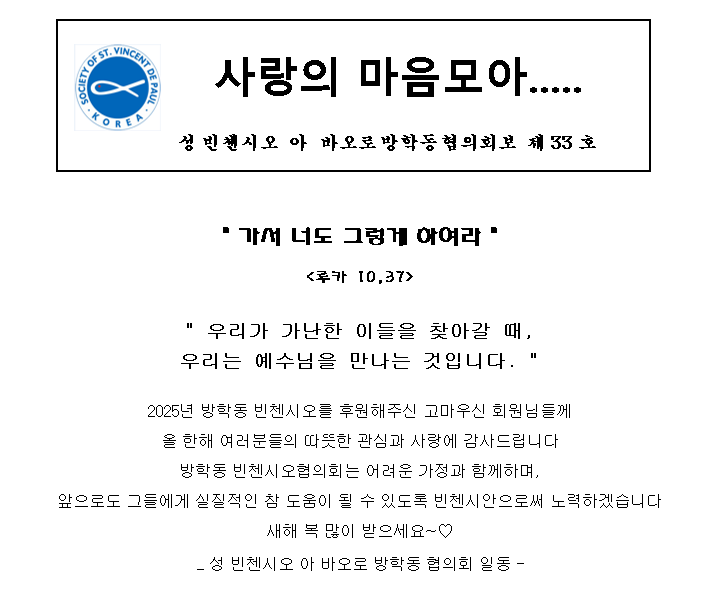 빈첸시오 분류 2025년 빈첸시오회 활동보고 및 회계보고 작성자 정보 유리안나쪽지보내기 메일보내기 자기소개 아이디로 검색 전체게시물쪽지보내기 메일보내기 자기소개 아이디로 검색 전체게시물 작성 작성일 2026.02.13 17:55 컨텐츠 정보 32 조회 0 추천 목록 본문 2025년 빈첸시오회 활동보고 및 회계보고입니다 0 추천 SNS 공유 관련자료 댓글 0 등록된 댓글이 없습니다. 로그인한 회원만 댓글 등록이 가능합니다. 목록